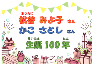 『ちいさいモモちゃん』の作者(さくしゃ)・松谷(まつたに)みよ子(こ)さんと、『だるまちゃんとてんぐちゃん』の作者・かこさとしさん。お二人(ふたり)は数多(かずおお)くのしたしみやすい子どもの本(ほん)を書(か)かれました。松谷みよ子さんは2月(がつ)に、かこさとしさんは3月に、それぞれ生誕(せいたん)100年(ねん)をむかえられます。この機会(きかい)にお二人の作品(さくひん)をもっと読(よ)んでみませんか?