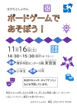 小学生対象のボードゲーム会を開催します。 “おばけキャッチ”や“キャプテンリノ”など、カードやおもちゃを使ったゲームをする予定です。 ぜひ、遊びに来てね。