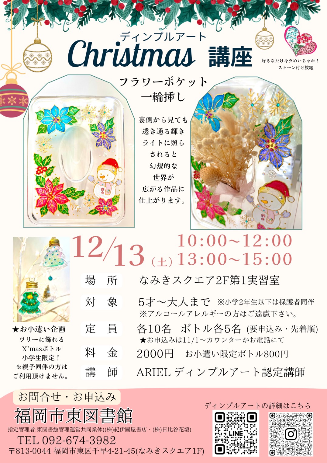 | 事前申込み | 要申込 ※11月4日(月)9:00~カウンターかお電話092-674-3982にて受付 |