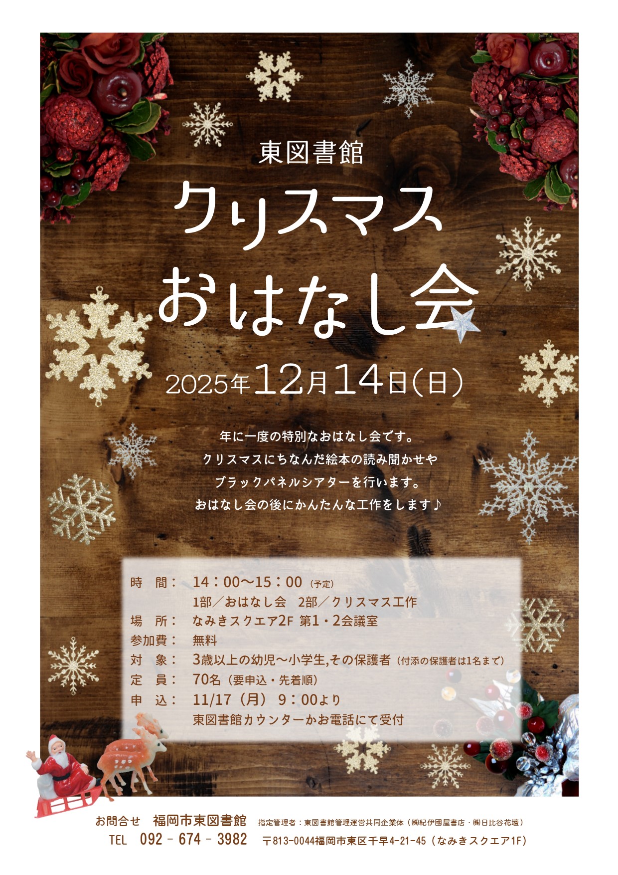 | お問い合わせ | 福岡市東図書館 ℡092-674-3982 |
